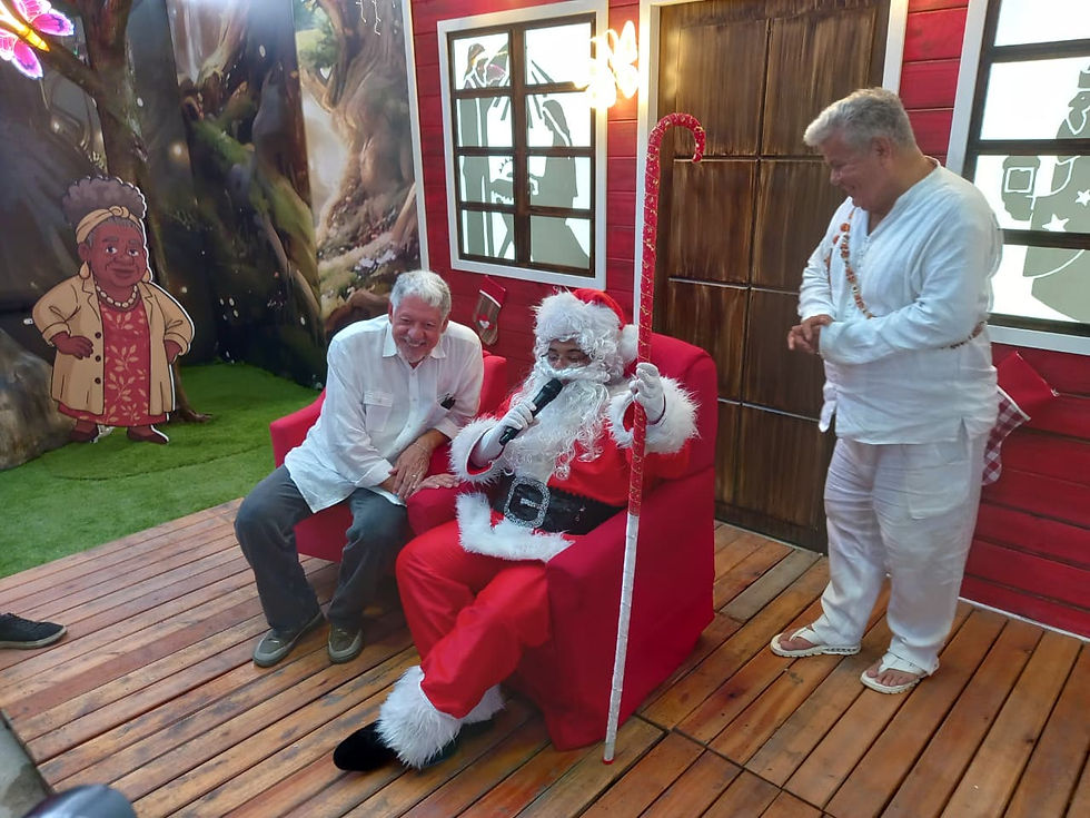 O diretor-presidente da MARÉ - Maricá, Arte, Roteiro e Experiências -, Antônio Grassi e o coreógrafo Milton Cunha foram recebidos por Papai Noel. O novo secretário de Comunicação Social da Prefeitura de Maricá, jornalista e sociólogo Keffin Grache, também prestigiou o evento (foto Agência GBNEWS)